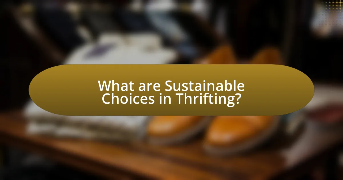Sustainable choices in thrifting include selecting high-quality, durable items, prioritizing second-hand clothing over fast fashion, and supporting local thrift stores. By choosing well-made garments, consumers reduce waste and extend the lifecycle of clothing, which is crucial given that the fashion industry contributes significantly to environmental degradation. According to the Ellen MacArthur Foundation, the fashion industry is responsible for 10% of global carbon emissions, highlighting the importance of sustainable practices. Additionally, purchasing from local thrift shops supports community economies and reduces the carbon footprint associated with shipping goods.